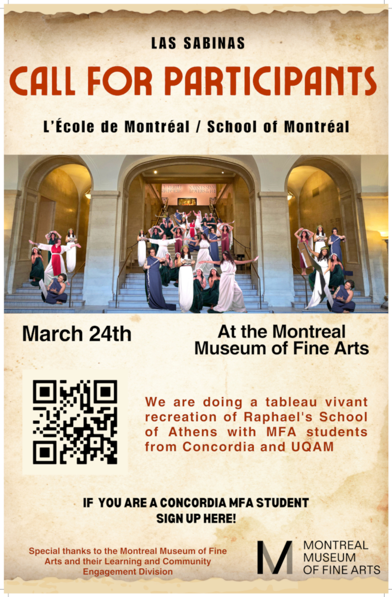 Embracing a DIY approach, humour, absurdity, subversion, looping, re-purposing, we reuse materials, images, and gestures. Our intention is to occupy and intervene into the galleries, museums, institutions where representations of the Sabine women are hosted. In search of our sisters, we will rummage through archives to unearth, converse, and disturb, disrupting conventional modes of research to uncover the richness and diversity of Sabinas’ presence.